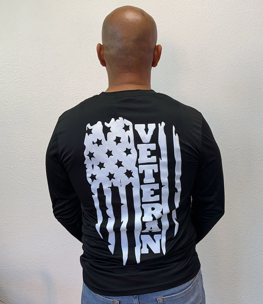 Distressed American flag veteran long sleeve T-shirt Black